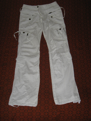 Продаю также новые белые штаники, очень модные и красивые. Причина продажи та же. Цена - 800 рублей.