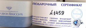 бессрочный подарочный сертификат в Русский Ювелир на 1500 руб.отдан в добрые руки