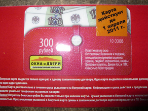 Отдам дисконтную карту на 300 рэ. производственной компании "Окна и Двери" (действует до 1 апреля). За шоколадку.