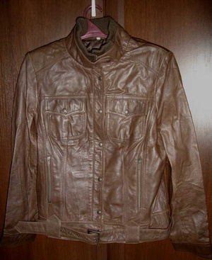 Продам новую кожаную куртку размер 48-50. По размеру не подошла, у меня 46-48, но мне свободно. Подстежка из кролика отстегивается. Воротник из волка тоже отстегивается. Можно носить как кожаный пиджак, а на холодную осень все пристегнуть и будет тепло. Цена 10 т.р. Мерить можно на пл.Калинина