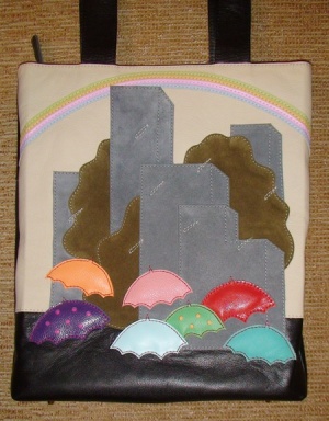 Если понравился именно такой рисунок и такая расцветка, то есть еще другая модель в таком цветовом решении и с этой же аппликацией - плоская прямоугольная с ручками на плечо.