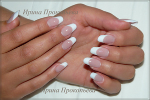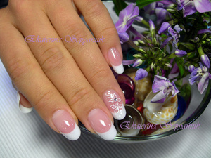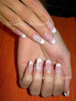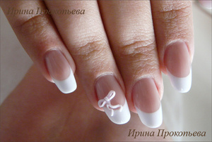 с бантиком( бант- акриловая лепка)Иришь, такие нежные они с бантиком получились. Прелесть. И как всегда все четко! Да, френчи самые популярные ногти.