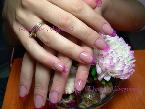 Хотелось бы нарастить обычный френч без изысков, максимум скромный дизайн на паре ногтей, гель или акрил, длина кончика, не помню градацию, 5-7 мм. Подскажите стоимость, у кого меньше, к тому и пойду!