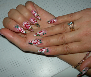 Выкладываю свои ноготочки, может кому-то покажется слишком ярко, но я люблю такие, с цветочками