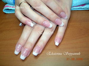 У меня белые на расхват. Вот завтра, опять.... два белых френча будет. Один свадебный, может уговорю на что-то не обычное.Симпатично. Всем везет с цветом... Но только не мне.