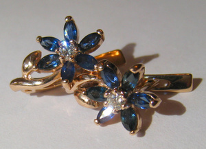 Первые серьги - где цветок из сапфиров, и серединка-бриллиант - 7 тысяч.