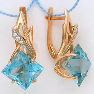 С голубыми топазами 7х7мм или 8х8мм и бриллиантами такая красота обойдется в примерно 15тыс. Можно здорово сэкономить, подобрав похожие серьги у него в каталогах (есть несколько похожих пар, тоже с квадратными камнями), тогда реально уложиться в 9 тыс. Если заменить бриллианты на фианиты, то стоимость снизится на 3-4тыс.