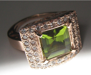 Кольцо, золото 585, хризолит (перидот природный), бриллианты. Примерная стоимость кольца около 18тыс. рублей.