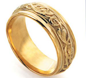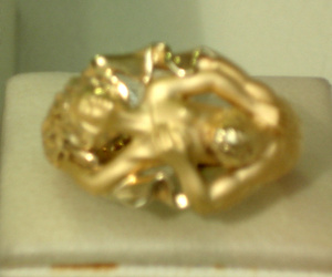 Насчет вашего кольца мастер сказал - сделать точно такое же не сможет, возникнут трудности с выполением объемного рисунка. Но у него в каталогах есть большой выбор примерно таких же колец, без камней, с объемной резьбой. Если подберете из каталога, стоимость такого колечка будет примерно 900 рублей за грамм.