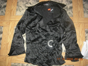 Продам новую кофточку из плотного трикотажа. Размер 46-48. Можно и на не полный 50. Фирма Rijekt (немецкий каталог) Золотой принт, открытые плечи. Края обработанны обметкой. Цена 300р. На рост 170-175. . Плечи могут быть менее открытыми.Но рост тогда до 170.