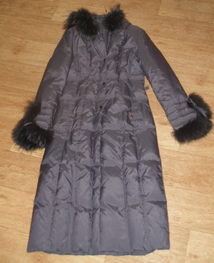 Длинный, ниже колена. Размер s. Но на 40-42 может быть большеват. Приглушенно темно фиолетовый цвет. Мех на капюшене и рукавах отстегивается. Практически новый. Пух не лезет. Фирма snow owl. Удобные замки и заклёпки.