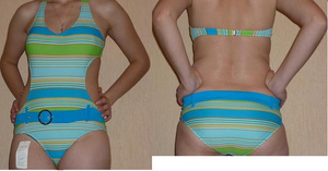 Купальник. Спереди цельный. Сзади спина открытая. Новый. Купила ходить в бассейн, но видимо не судьба. Лежит уже полгода, даже этикетки не срезала. Размер 42-44. Цена 300 руб.