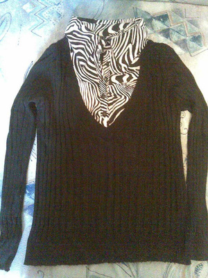 Черная кофта стрейч с пайетками-400 руб. Размер 50. Хорошо подойдет на корпоратив. Жаль не видно как блестят пайетки.