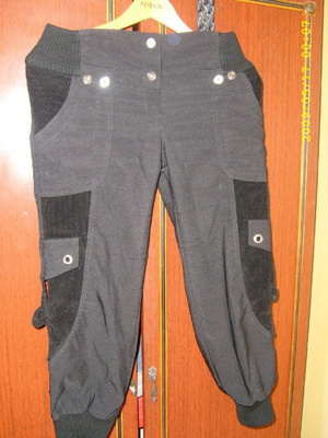 Продам капри.Размер 44-46.Но ближе к 44.Немного фонариками по низу. По низу и по талии - резинка.Есть в комплекте подтяжки, но можно и без них.