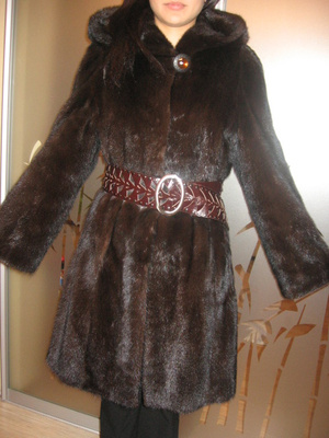 шубка №2: норка, темно-коричневая, капюшон, пояс, по колено, цельная. размер 46-48-50. рост от 165см. аргументированный торг