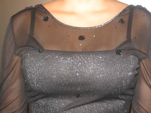 Девушки, для НГ очаровательное платье. одето 1 раз. размер 46-48, рост 170. внутри серебрянная тянущаяся ткань-садится по фигуре. сверху тонкая черная сетка. красивая спина. по цене договоримся.