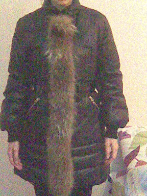 Продам пуховик в очень хорошем состоянии с мехом енота, лаковым широким поясом, воротник-стойка. Очень стильно смотрится, 4000р