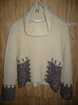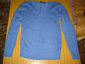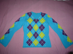 симпатичная теплая кофточка Бенеттон с актуальным ромбовым орнаментом впереди и на рукавах, спина однотонная (80% шерсть, 20% полиамид). размер 40-42, на стройную девушку, или можно на подростка.