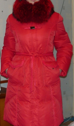 Крой классический, приталенный, на пуговках, на воротнике мех, который отстегивается при необходимости, длина до колена при росте 1,65+каблуки