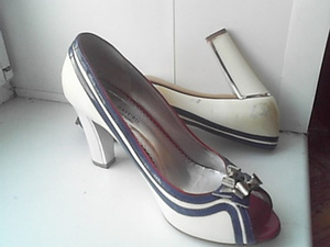 туфли на высоком устойчивом каблуке, лак белый/синий/красный, размер 38.