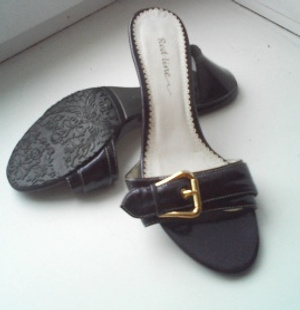 летние босоножки без задника глубоко-фиолетовго цвета (почти черный), надёваны всего пару раз (это видно по подошве), размер 35, можно даже 36. 200р