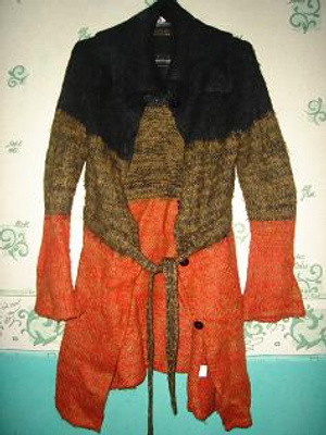 Кардиган длинный. Кажись ангора. Очень теплый. Р-р от 42 до 46, Поясом можно регулировать. есть фото подробней. Отдам за 300 руб.