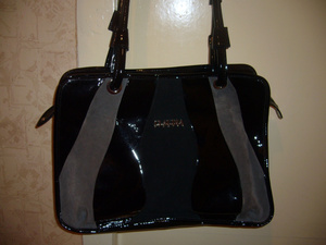 Лаковая сумка,спереди вставки из черной и серой замши(натуральный лак и замша) CLAUDIA Куплена в Домани.Б/у весной 1 месяц и осенью 1 месяц.Цена 2800руб.