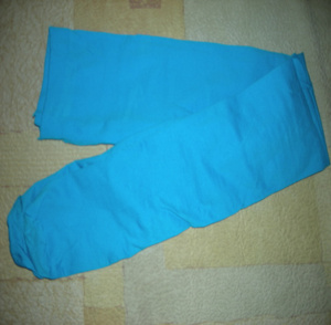 Точные размеры: диаметр в поясе 83 см, длина штанины по внешнему краю - 103 см, длина штанины по внутреннему краю - 85 см. Внизу штанины на замочках. Длина замка 25 см. 600 руб.