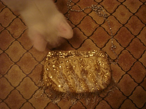 Нашла у себя золотистый клатч, текстиль, бисер, пайетки, размер: 13,5х21см, ручка-цепочка отстегивается.