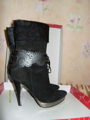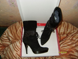 стильные зимние ботильоны европейской марки Renaissance, верх-натуральная замша,декор- нат. кожа и мех ,внутри-натур. мех, платформа и каблук, оч. удобные. р-р 36, одеты 3раза,малы, 2500руб.