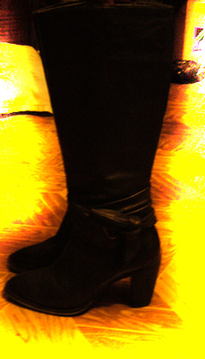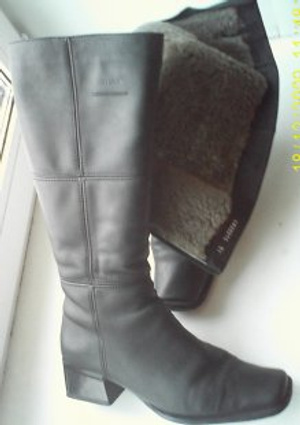 сапоги демисезонные р-р 36, цвет черный, нат кожа,каблук 8см,устойчивый.косяки на фото из-за вспышки.на самом деле никаких пятен нет,в жизни лучше,чем на фото,внутри - черный мягкий ворс