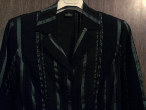 Встречаем Тигра жакетом в полоску ! Без подклада, стрейч черный в бирюзовую полоску. р. 46 -48. тел. 8 913 906 08 77. Цена 500 руб.