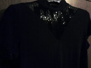 Платье черное, 42 размер, длина чуть выше колена. Одевалось один раз на НГ. Цена 1000. За форумом не слежу, пишите в личку.