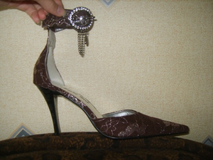 продам туфли. материал шоколадного цвета с рисунком серебрянной нитью. размер написан 245 , мне на 40-й малы, видимо 39-й с красивой пряжкой со стразиками. НОВЫЕ. отдам за 600 р.