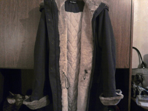 Продам пальто, цвет олива, капюшон отстегивается, мех искусственный беж( я сначала подумала натуральный), р.48-50. На отстроченном синтепоне, фабричный Китай, косящий под Италию. К сожелению я не влезла.