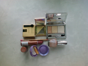 Помада юзана 2 раза, тени тоже пару раз, кроме Буржуа(эти пользовала побольше). Карандаш заточен 1 раз.