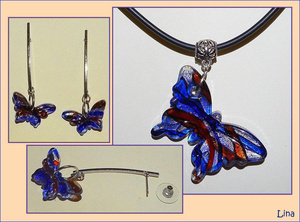 ...красный с зеленым: вот такой кулон и подвески для серег.Комплект из красных бабочек продан.