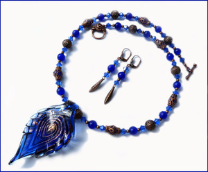 Длина без кулона - 52 см, размер кулона - 7х4 см, длина серег от швензы - 5 см. Фото кулона крупнее.