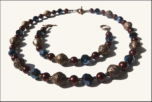 Длина бус 48 см, браслет на запястье обхватом 16,5-17 см (возможно изменение длины). За счет того что медные бусины литые, комплект лежит весомо.
