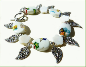 Миллефиори, натуральный перламутр, металлические подвески. На запястье около 17 см.