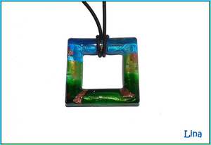 Прямоугольный кулон лэмпворк на каучуковом шнуре. Размер кулона 4х1,8см.Продан.