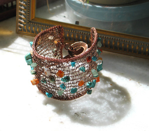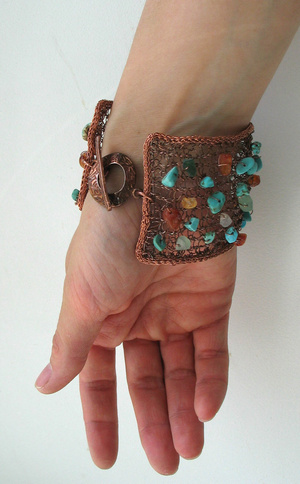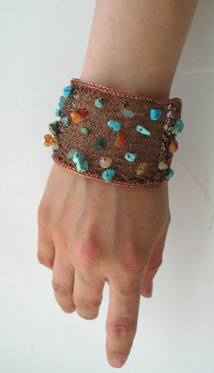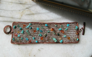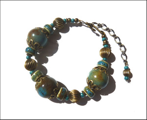 ручная работа. медь, сердолик, нефрит, говлит под бирюзу. длина застегнутого браслета 19см (можно удлиннить) 1100 р.