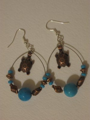 Серьги с бирюзой и бронзовыми черепашками.Проданы.