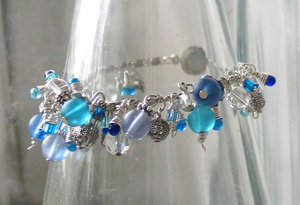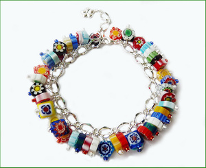 Совершенно летний charm-браслет из бусин миллефиори на посеребренной фурнитуре.