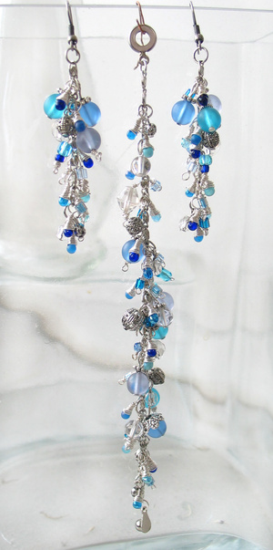 стеклянные и металлические бусины, металлическая и посеребренная фурнитура