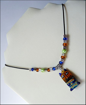 Авторское стекло ручной работы (Чехия), металл, стекло, кожаный шнур (45 см).