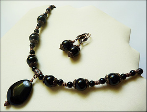 Агат, оникс, стекло, медная фурнитура.