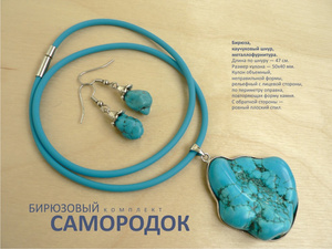 Комплект "Бирюзовый самородок": бирюза, металлофурнитура, каучуковый шнур. Серьги на швензах из медицинской стали. 750 руб.