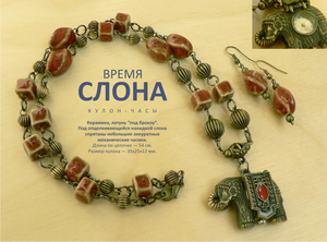 Кулон-часы "Время слона" и серьги к нему: керамика, латунь "под бронзу". 1150 руб.ПРОДАН.