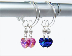 Посеребренные швензы-кольца с силиконовыми заглушками, кристаллы Сваровски цветов Rose AB и Crystal Heliotrope AB.